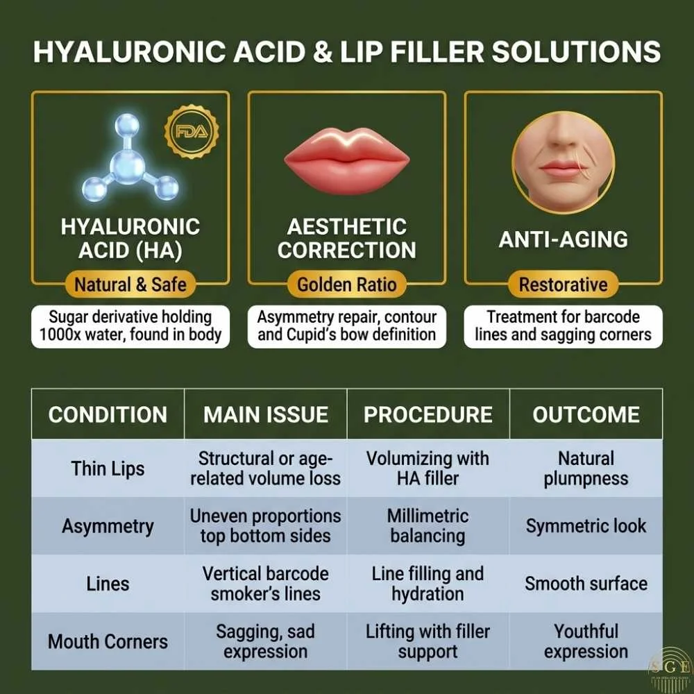 Lips, the timeless symbol of facial aesthetics and attractiveness, are the most important focal point that draws all attention when communicating, smiling, and speaking. Lips, which naturally possess a fullness, vibrant color, and sharp contours in youth, gradually lose their volume, become thinner, and develop fine wrinkles around them (barcode lines) due to advancing age, genetic factors, harmful effects of the sun, and decreased collagen production. Having structurally thin or asymmetrical lips is also a matter of aesthetic concern for many people, not just the aging process.